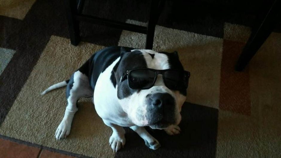American Bully dog being cool in his sunglasses